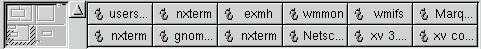 The GNOME Pager is an applet that will show you all of your virtual desktops and the applications within them. There are two main areas on the GNOME Pager, the desktops view and the applications view. In the desktop view each of your desktops will be represented as a small rectangle. If there are any applications on the desktops, they will show up as small outlines according to their position on the desktop. The Applications view will show you the applications on your active desktop in a list view. If you press the button in the middle that contains the arrow it will show you a view of all desktops and list the applications that are currently on them.