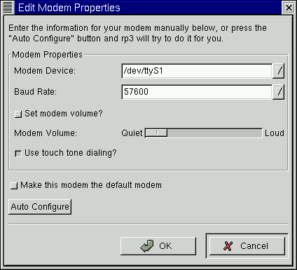 You can also rescan your system for modem information by selecting the Auto Configure button, then choose to keep the settings it finds.