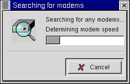 In the Modems tab of the Internet Connections dialog, you can specify the location of your modem (such as /dev/ttyS1). You can either type in the information, or click on the Find Modem... button, which will attempt to automatically detect your modem.