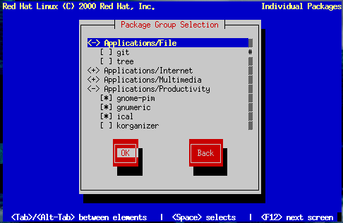 Note that some packages that are required for every Red Hat Linux system (such as the kernel and certain libraries) do not appear in the package selection dialogs.