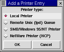 For this example, we'll add a local printer. Highlight the entry Local Printer and select the OK button.