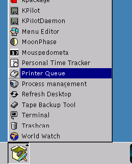 You can open the printer queue either by clicking on the printer icon on your desktop or by going to the Printer Queue item on the Utilities menu of the Panel (see Figure 5-11).