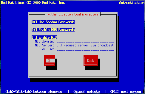 Unless you are setting up NIS, you will notice that both shadow passwords and MD5 passwords are selected. We recommend you use both to make your machine as secure as possible.