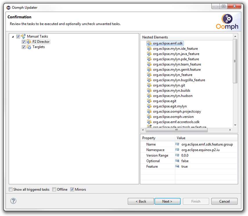 The update wizard is the basis for Oomph's startup- and manually-triggered, automated installation and provisioning process.
