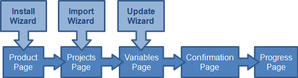 These wizards reuse the same underlying pages as follows: